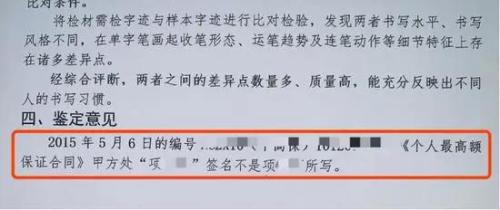司法鉴定显示,这份《个人最高额保证合同》的签名,并非项先生本人所写,指纹也不是项先生所留。从裁判文书网上找到了本案的一审民事判决书,判决书也提及了相关鉴定意见。