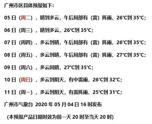 广州市气象灾害应急指挥部决定从5月4日16时47分起启动广州市气象灾害(高温)Ⅳ级应急响应,广州11区高温黄色预警均已生效。据广州市气象台预计,未来五天广州都是35℃的高温日,阳光猛烈。