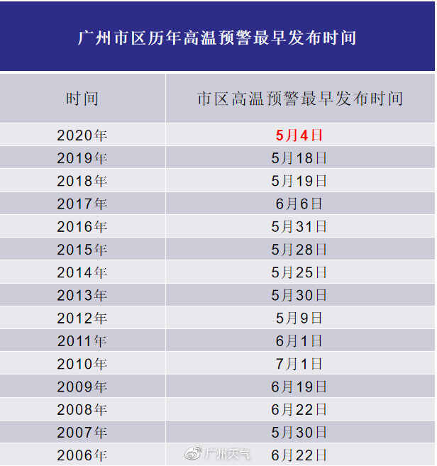 在此之前,广州高温预警发布最早记录是2012年的5月9日,本次预警将记录提前了5天。