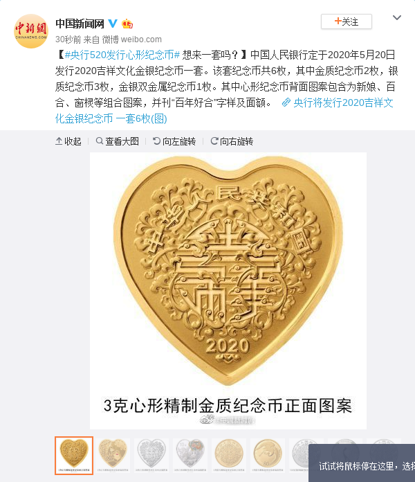 原标题:央行520发行心形纪念币 想来一套吗?