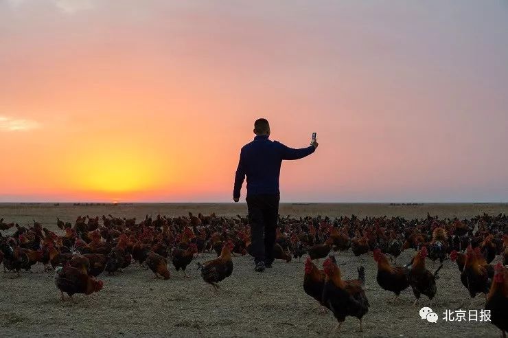 黑龙江网红养鸡专业户“鸡将军”桑庆军草原上进行网络直播。新华社发