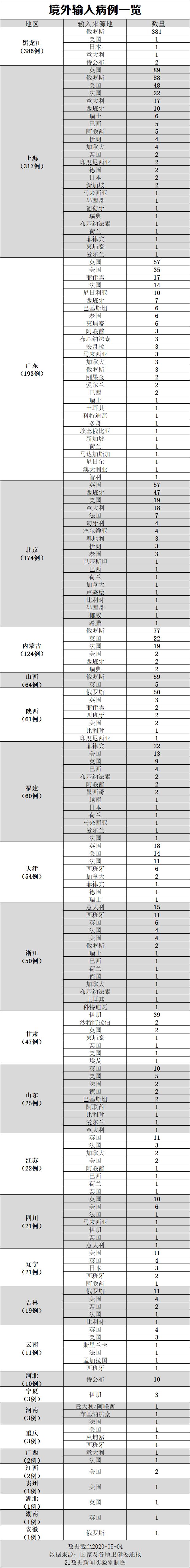 俄罗斯、英国、美国是境外输入主要来源地。截至5月4日24时,俄罗斯已累计输入病例672例,英国输入309例,美国输入174例。(详情查看文末附表:境外输入病例一览)