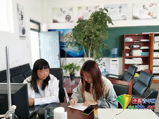 中国海洋大学研支团云南队志愿者王译萍在落实贫困生资助申请工作。中国海洋大学研支团 供图