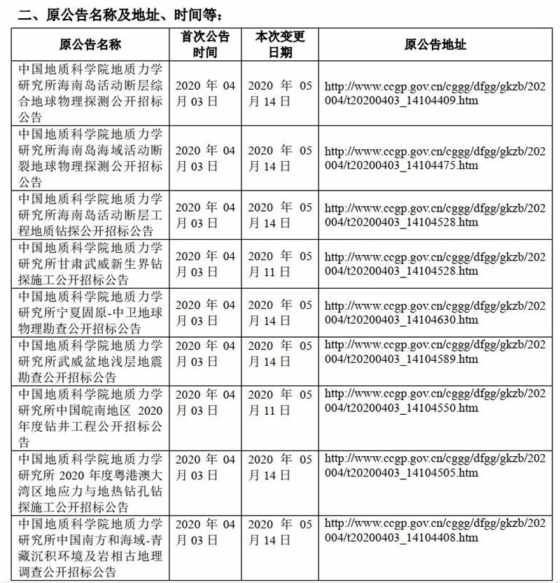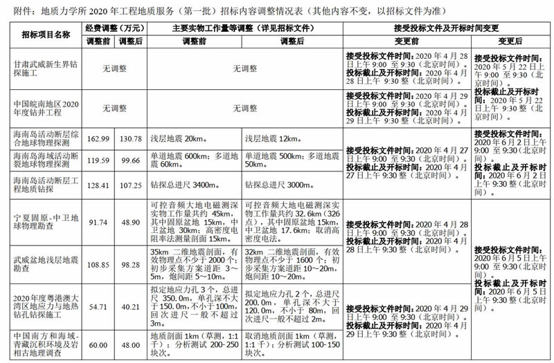 附件:地质力学所2020年工程地质服务(第一批)招标内容调整情况表