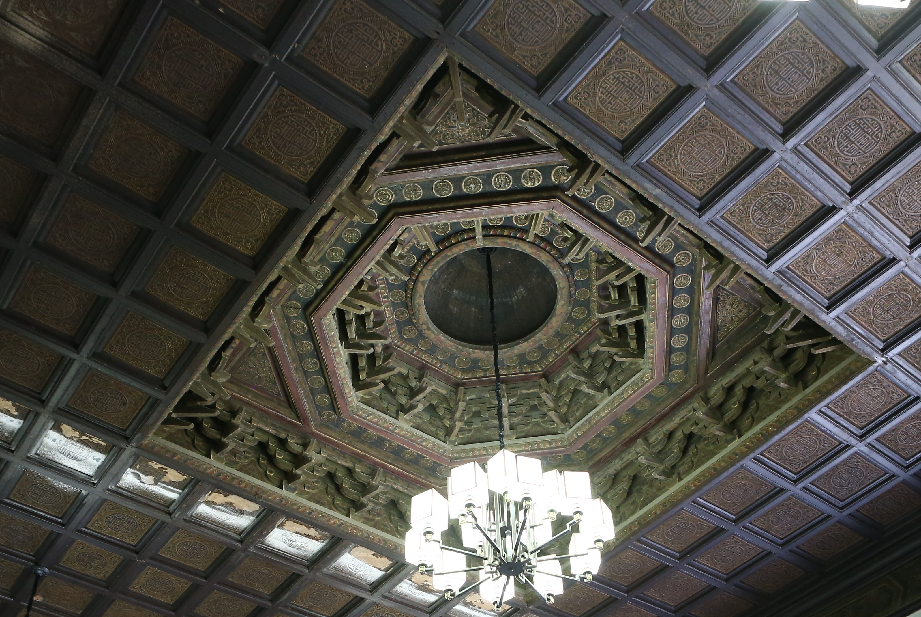 记者看到,陆宗舆的故居是一个寺庙建筑,大殿面阔五间,砖雕精美,屋顶正中是木构套叠藻井。
