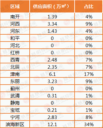 市场供应方面,3月天津新房供应面积总计35.77万O,其中环城四区占比4成,滨海新区占比34%,市内六区占比17%,远郊五区占比最少,仅为9%。从各区来看,津南区供应总量6.1万O,占比在全市内最高,达到17%。