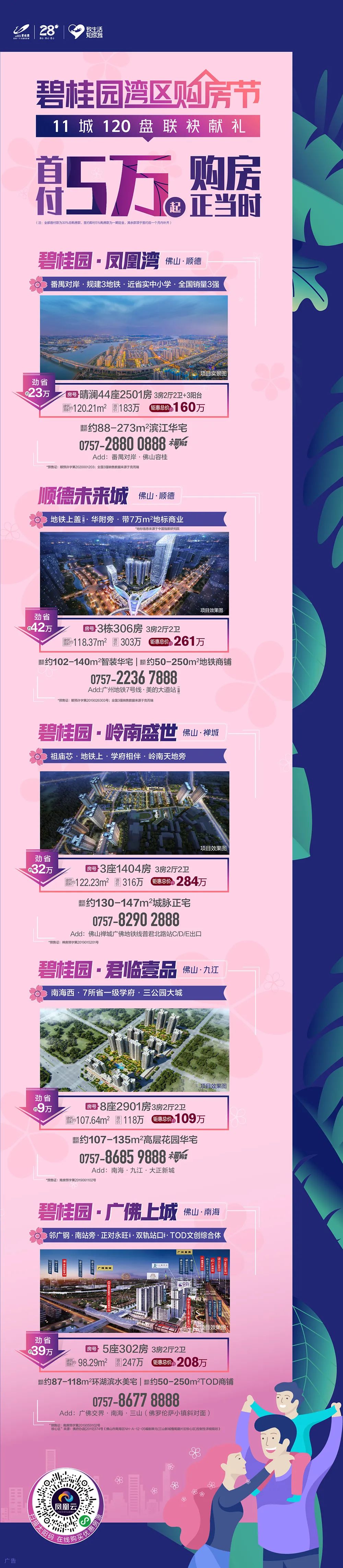 近日,碧桂园湾区城市群佛山、广州、深圳、珠海、惠州、中山、东莞、江门、肇庆联动清远、云浮共11城120个盘,启动“湾区购房节”促销活动。