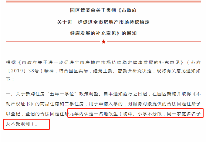2019年,关于学区房苏州也出台了相关政策。