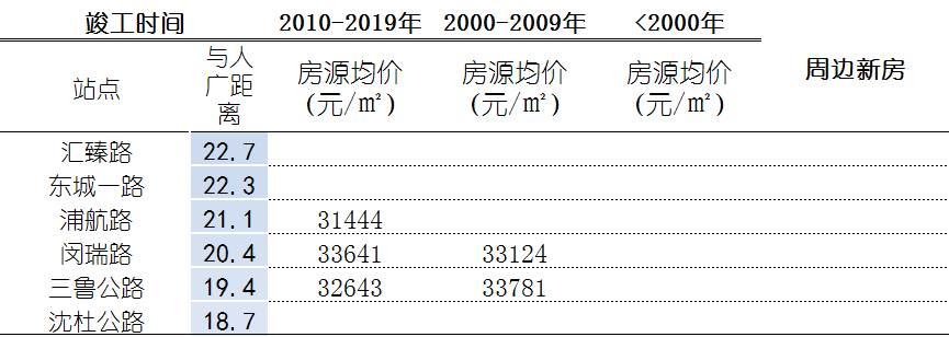 *16号线20-30km的站点(航头,新场)800m范围内目前没有挂牌住宅,同样暂把距离新场较近挂牌较多的次新房丝庐雅苑的价格(3.2W)近似的看做该部分站点价格。