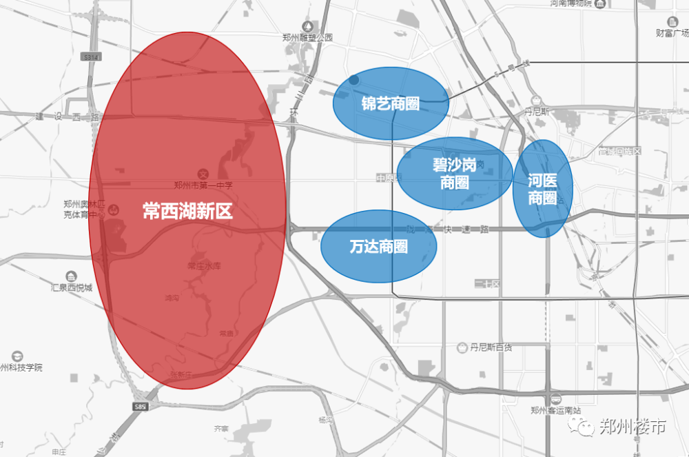 而郑州其它新区,大部分距离主城区的成熟商圈过远。有些新区所依托的老城区里甚至没有成熟的大型商圈,只能把希望寄托于更加飘渺的未来。