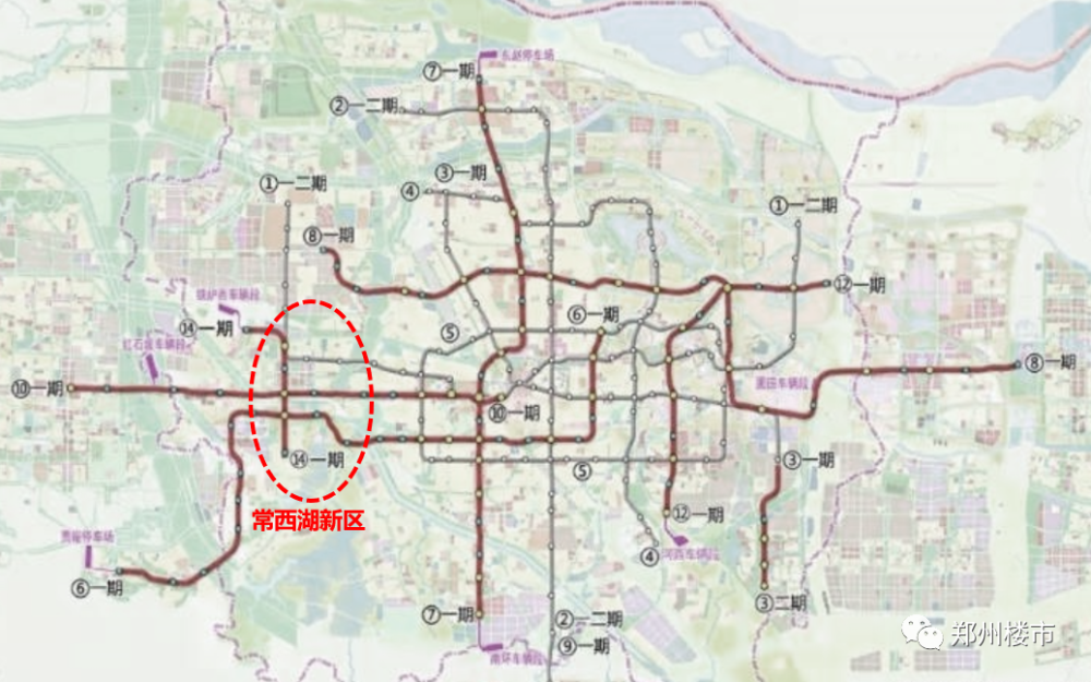 更关键的是,郑州轨道交通第三期建设规划中,从北往南数,地铁1号线、14号线一期、10号线一期、6号线一期,在常西湖新区交叉成网。4条地铁线交汇的常西湖,成为郑州所有新城区中,地铁路网最密集的区域。