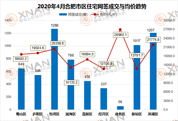 2020年4月合肥市区住宅网签成交与均价趋势