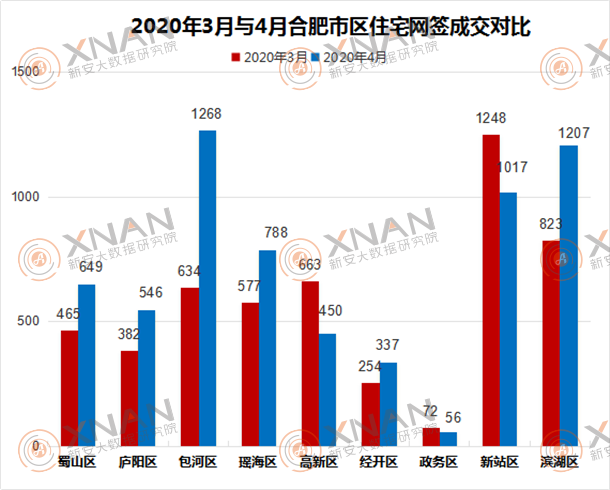 2020年3月与4月合肥市区住宅网签成交对比