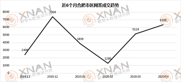 从近6个月合肥市区住宅网签成交趋势来看,2020年2月住宅网签成交量最 低仅1280套,2月之后合肥住宅网签成交量逐月上涨,均在5000套以上;而在2019年12月住宅网签成交量为7368套达到峰值,同时也是2019年1月份以来成交量最 高的一个月。