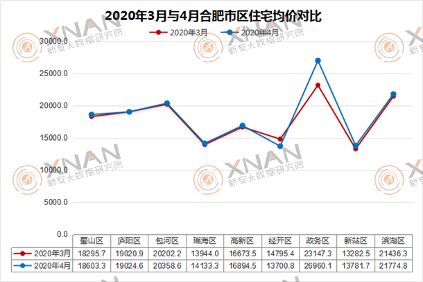 2020年3月与4月合肥市区住宅均价对比