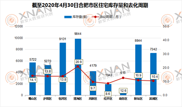 截至2020年4月30日合肥市区住宅库存量和去化周期