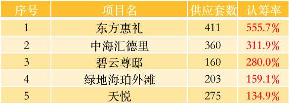 据统计,这5个认筹率破百的纯新盘项目,大部分都是内环、内中环的改善红盘。