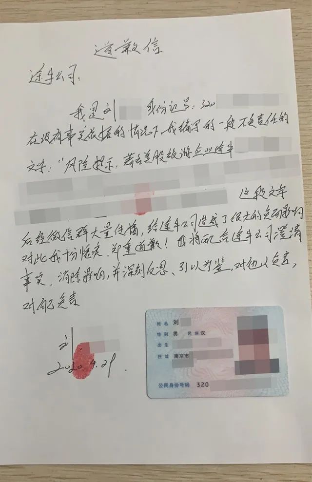 (途牛披露的道歉信)