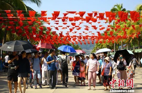 资料图:2019年10月3日,三亚南山景区游人纷至。 王晓斌 摄