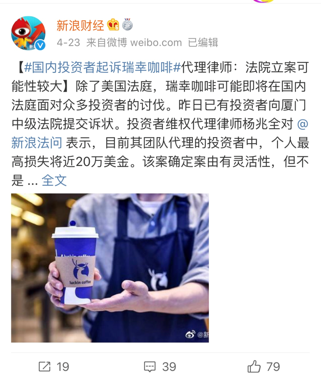最近已经有中国投资者起诉瑞幸,有人在26.9美元买入,6.3美元卖出,损失超过70%。还有瑞幸的供应商、加盟商、员工,哪个不是实打实的社会主义损失?
