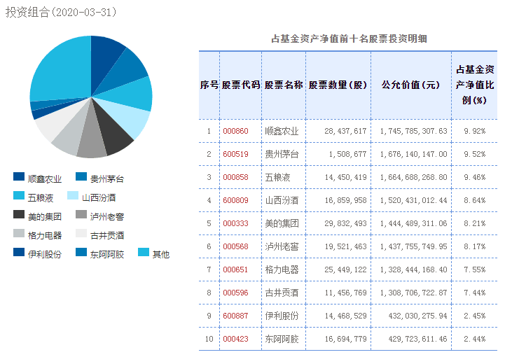 虽然疫情的确影响高端白酒的社交氛围,考虑到贵州茅台强劲的营销能力和品牌号召力,易方达消费行业基金对贵州茅台的减持,看起来更像是一种“试探性的观察”。在一季度减持贵州茅台后,贵州茅台占易方达消费行业基金的净值比例,也仅从去年末的9.58%轻微下降至2020年第一季度末的9.52%,而且,减持股票后,贵州茅台在易方达消费行业基金中,由第三大重仓股提升为第二大重仓股。