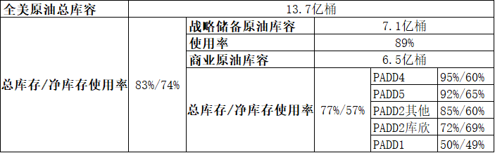表 美国原油库容面临耗尽的问题