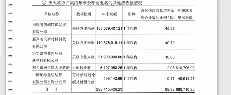 另外值得注意的是,举报人曾反映嘉澳环保未详细披露和各子公司具体的关联方往来款,只有一个总数。