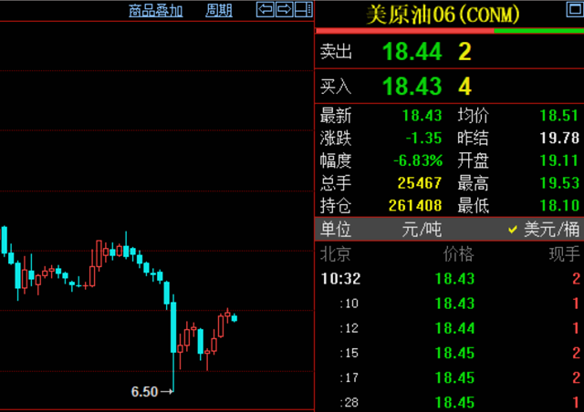 今日,美国原油继续大幅下挫,截至发稿,美原油6月合约跌幅为6.83%。