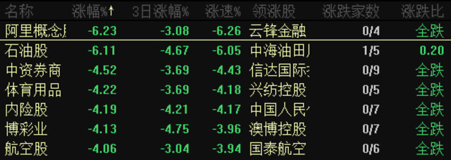 此外,阿里概念股也跌幅较大。