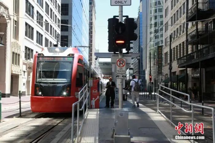 资料图:当地时间5月1日,美国得克萨斯州开始“重启”经济,餐厅、零售店、电影院和商场可按要求恢复运营。图为经济“重启”首日,休斯敦市中心的轻轨站,乘客寥寥无几。中新社记者 曾静宁 摄