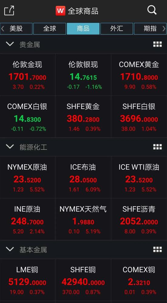 国际油价早盘普跌,但随后也跟随美股震荡走高。截至5月4日收盘,美油6月合约收涨7.08%,报21.18美元/桶,连涨五天,刷新4月20日以来新高;美油7月合约收涨5.52%,报23.52美元/桶。布油收涨5.79%,报27.97美元/桶。