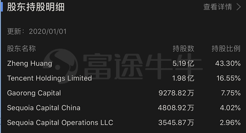 此外,拼多多最新股权披露,黄峥持股43.3%,腾讯持股16.5%。