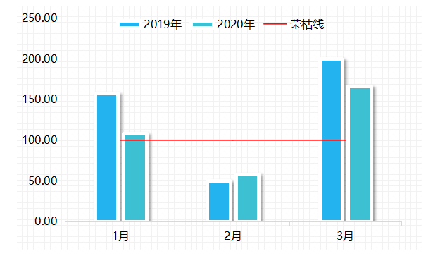 2020年一季度,嘉兴水果市场景气指数整体与去年走势保持一致,呈“V”型态势运行。其中1月处于春节前后,水果交易活跃度虽不及去年同期,但仍处于荣枯线以上运行,仍保持在景气区间。2月市场景气指数呈阶段性回落,略高于去年同期8.33个百分点,景气指数高于去年同期,表明随着居民生活水平的提高,水果需求进一步扩大和升级,交易活跃度和经营能力相比去年同期有所扩大。3月市场景气指数触底反弹,高出荣枯线66.67个百分点,市场经营状态逐步恢复强劲,但仍低于去年同期,水果交易同比放缓。