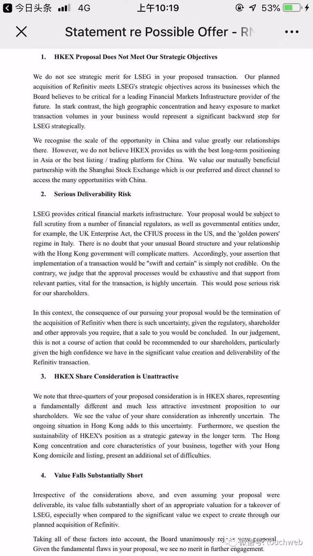 伦交所称“我们认识到中国机遇的规模,并重视那里的关系。然而,我们不相信香港交易所为我们提供亚洲最佳长期定位或中国最佳上市/交易平台。”