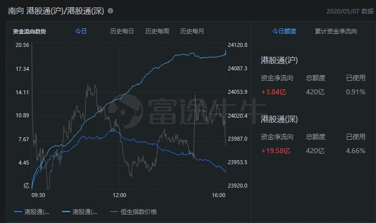 港股通方面,今日港股通(南向)净流入超20亿港元,今日净流入金额有所增加。