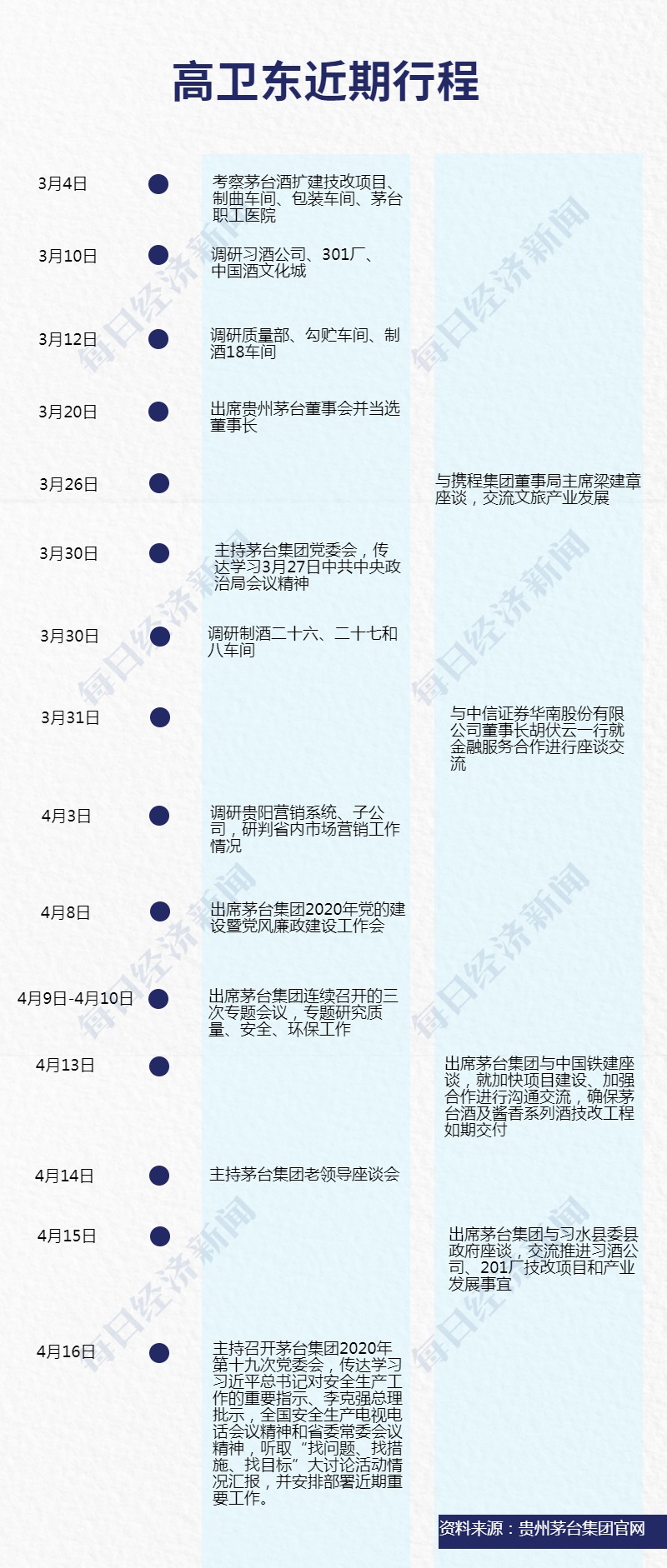 履新后,茅台新帅高卫东首先是开展了密集的调研。