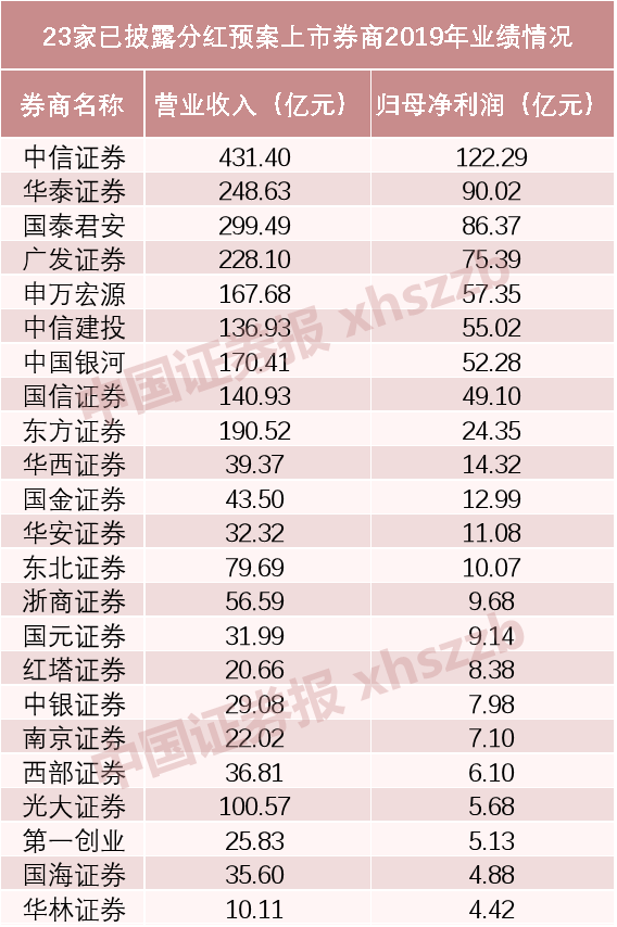 在2019年年报渐次披露同时,各大券商的分红方案也浮出水面。