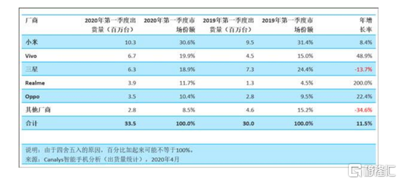 而Oppo,Vivo和Xiaomi为代价的。这三家公司的出货量分别下降了26%,19%和26%。
