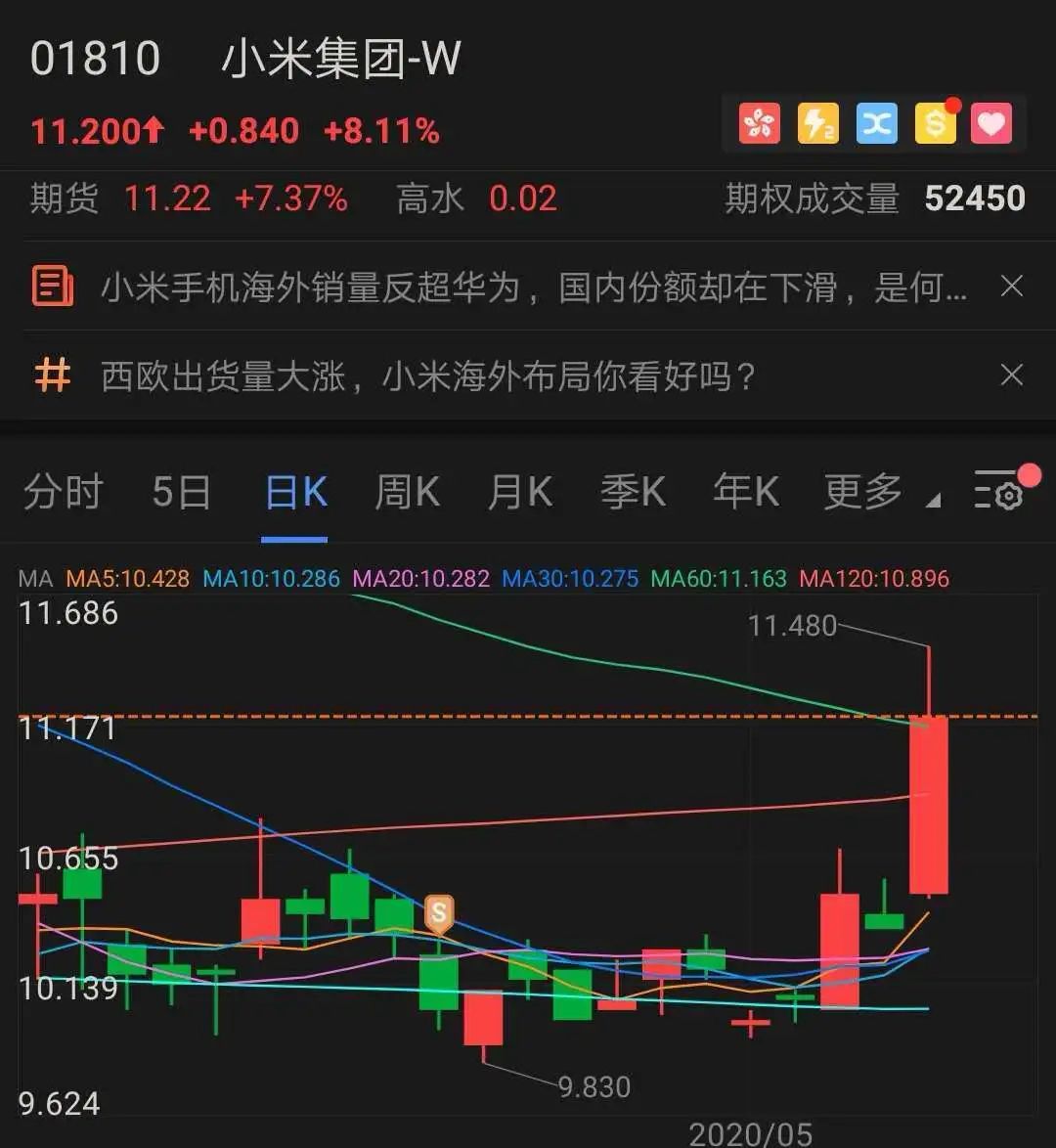 小米股价大涨