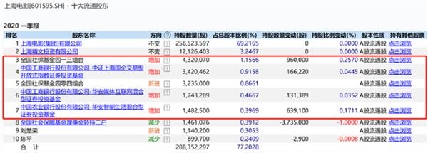上海电影则在一季度获得全国社保基金四一三组合、中证上海国企交易型开放式指数证券投资基金等机构加仓。