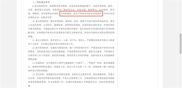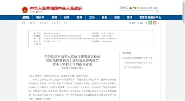 5月8日,国务院应对新型冠状病毒感染肺炎疫情联防联控机制印发《关于做好新冠肺炎疫情常态化防控工作的指导意见》,《意见》称,在落实防控措施前提下,可采取预约、限流等方式,开放公园、旅游景点、运动场所,图书馆、博物馆、美术馆等室内场馆,以及影剧院、游艺厅等密闭式娱乐休闲场所,可举办各类必要的会议、会展活动等。