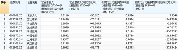 数据显示,电影产业链相关上市公司今年一季度业绩同比下滑严重,而除光线传媒外其他公司净利润均为负值。