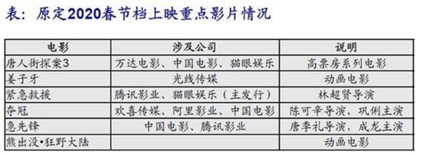 (2)下游院线公司:跟据以往数据,春节档票房占全年票房的1/5左右,而今年院线放映端在春节档及之后停摆,无疑对全年票房形成了巨大的压力。同时,影院属于重资产经营,积压的卖品库存、房租、员工薪酬等都会造成较大的资金压力。