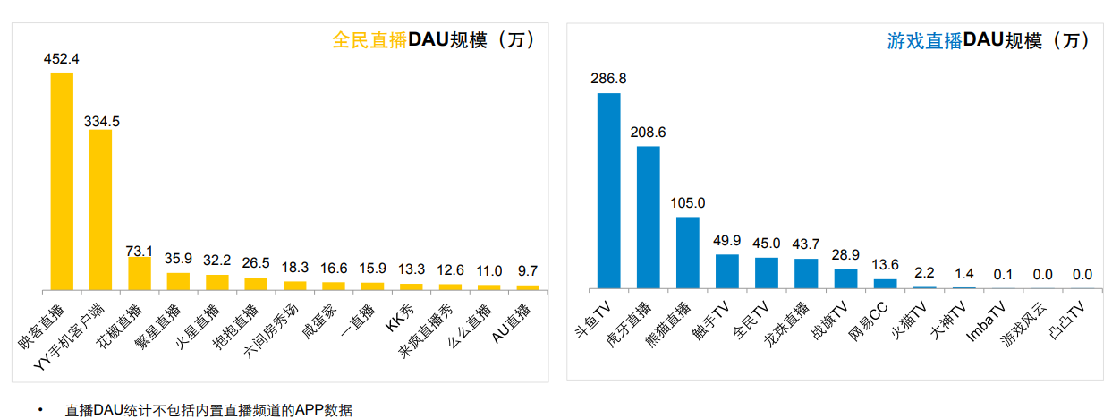 2016年6月各直播App的DAU数据,来源:Trustdata