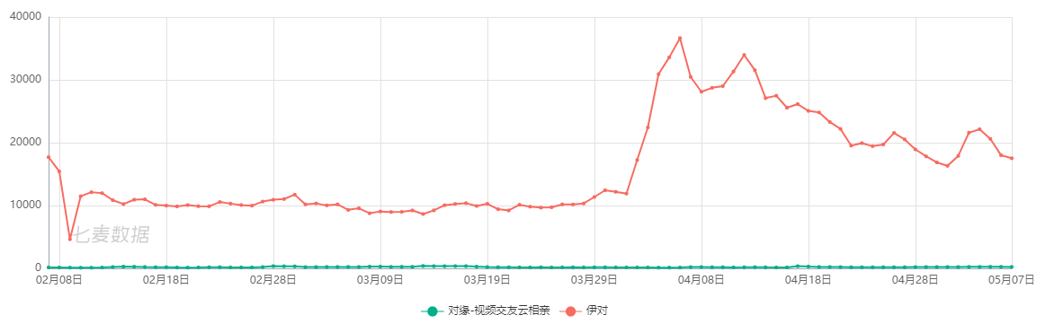 对缘、伊对近90天App Store下载量对比,来源:七麦数据
