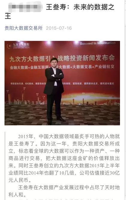 根据4月14日中国网财经报道,九次方大数据信息集团管理层核心高管日前向该媒体爆料称,公司资产多为空壳。九次方大数据集团创始人兼CEO、贵阳大数据交易所执行总裁、上市公司群兴玩具实控人王叁寿其实早在2020年1月15日就被公安机关带走调查,随后于2月14日补缴了大额税款,此后办理了取保候审手续。目前,王叁寿所涉及的案件还在调查过程中。