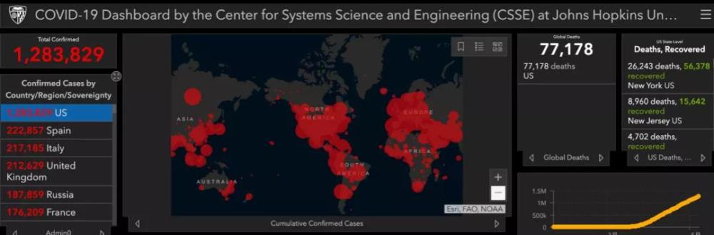 与此同时,根据约翰霍普金斯大学的实时数据显示,截止北京时间5月9日上午8时,美国已有新冠病毒感染病例超128万例,死亡7.7万例。较前一日新增近2.9万例。