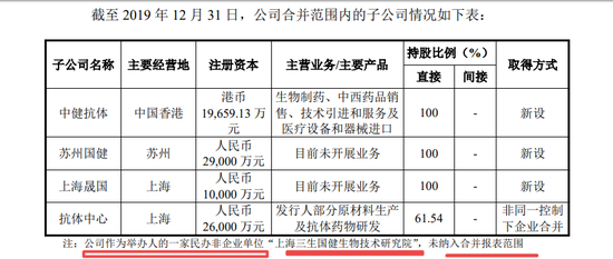 招股书披露,三生国健举办的民办非企业单位全称是上海三生国健生物技术研究院(以下称“三生国健研究院”),成立于2001年4月5日。奇怪的是,按成立时间,它比三生国健的前身中信国健有限还要早。