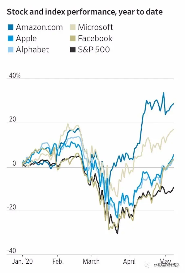 我们可以看到,尽管受到公共卫生事件影响,美股股市大幅下跌,快速进入技术性熊市,但是从目前来看也真的只是“技术性”熊市,很快反弹开启,不经意间标普500指数已经回到技术性调整区域,而纳斯达克指数更是年内转为正收益,这个过程中居功至伟的正是科技龙头股,亚马逊还很不客气的来了个新高。