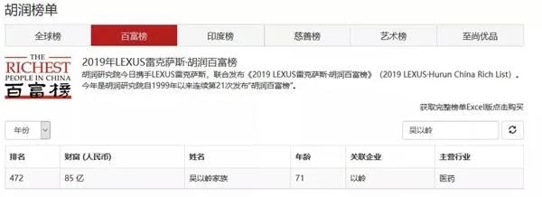 在2019年的胡润百富榜上,吴以岭家族以85亿的财富排在第472名,财富值较上年缩水15亿。在此次以岭药业迎来业绩爆发期后,吴以岭家族的财富或在2020年有所提升。